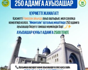 РАМАЗАН АЙЫНДА ИМАНҒАЛИ ОРТАЛЫҚ МЕШІТІНДЕ 250 АДАМҒА АУЫЗАШАР БЕРІЛЕДІ