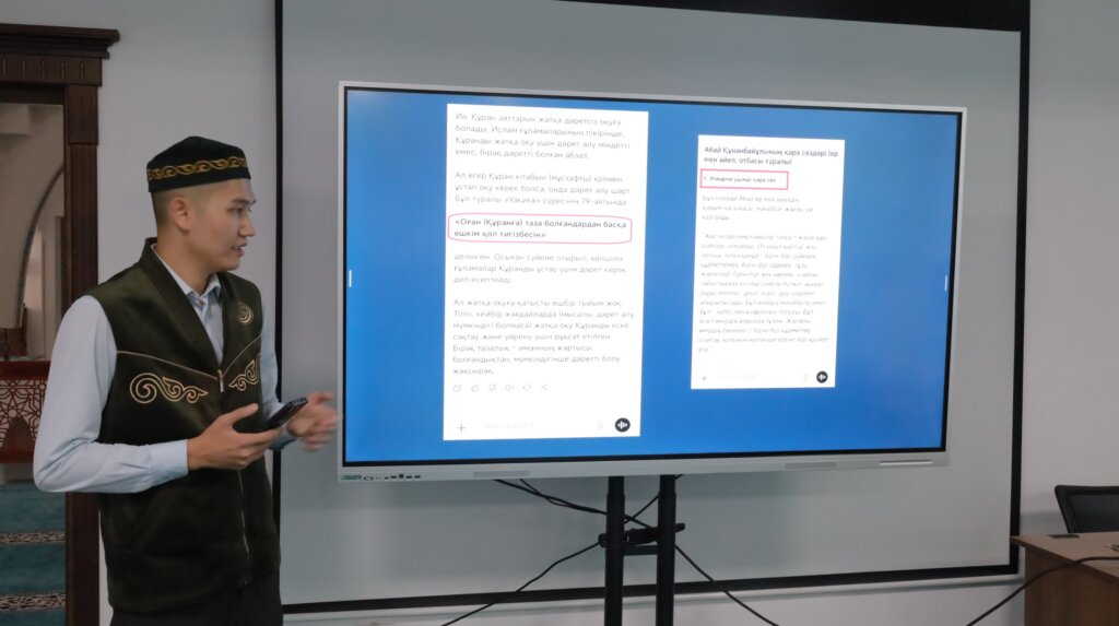 Бүгін өңір имамдарына арналған «Діни мақала жазуда жасанды интеллектті қолданудың пайдасы мен зияны» тақырыбында семинар өтті. Шараны «Иман» журналының жауапты хатшысы, журналист Ермұрат Назарұлы жүргізді.